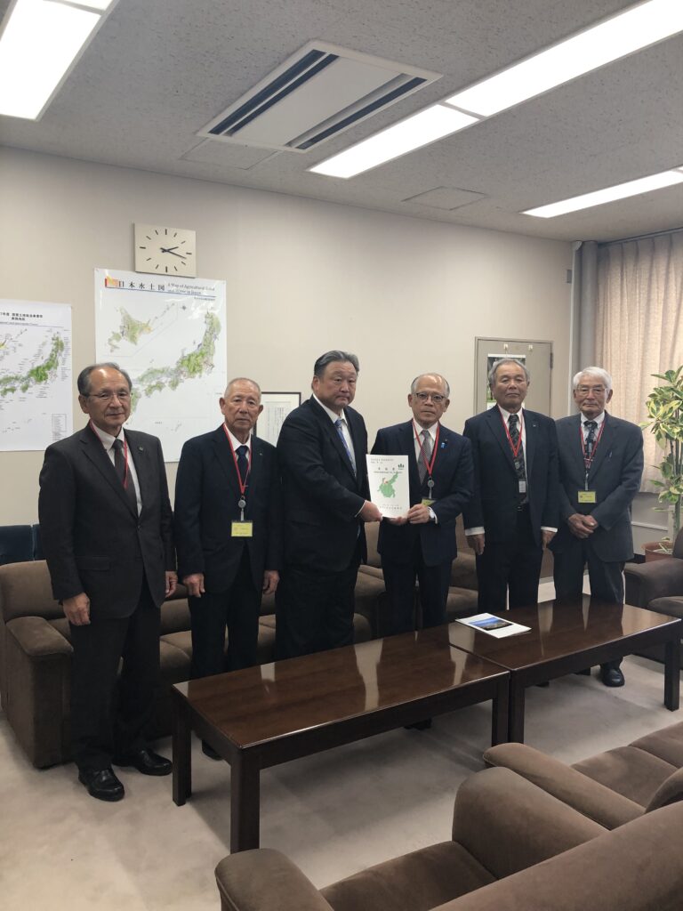 11月12日、朝日町から滑川市の3市2町の土地改良区で構成する東部土地改良協議会は、農林水産省に行き、土地改良事業予算(7年度補正予算と8年度当初予算)確保の要望活動を行いました。根本農林水産副大臣、松本農村振興局長、石川農村整備部長他に、圃場の大区画化等の土地改良事業が如何に農家のプラスになり地域の安心と元気を生んでいるかをPR動画等も使って説明しました。これからの財政当局との協議・折衝において、今日の地元の声を踏まえ、また上田衆議院議員、野上参議院議員、進藤参議院議員他の後押しを受け、農林水産省が予算獲得にしっかり頑張って頂くことを期待します。