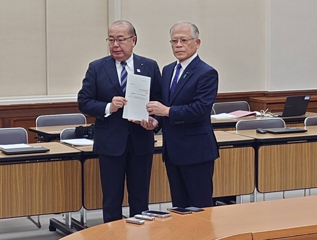 12月3日、自民党県議会議員会は、新田知事に対し、県政の重要課題についての提言並びに令和8年度予算重点要望を行いました。私達は、本年4月からの議員活動や会派活動を通して、県民の課題・ニーズの把握に努めて来ました。キャッチした2千を超える項目を集約・精査・体系化をして、4つの柱からなる最重点要望項目(❶生活の安全保障・物価高対策をはじめとした国の総合経済対策への対応❷人口減少対策❸高校再編❹県土強靭化の推進)と12の柱からなる重点要望項目にまとめて、本日知事に申し入れました。