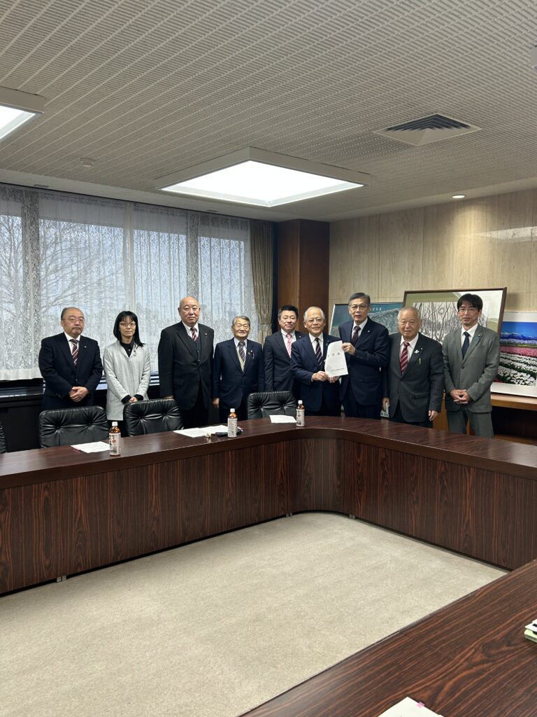 12月22日、自民党朝日町支部は、笹原町長に令和8年度予算要望を行いました。自民党議員が町民との会話や友好団体との意見交換を通して得た要望事項や課題等を、[まちづくり][医療・福祉][産業・観光][安全・安心]の4本柱・20項目に集約して要望しました。例えば①泊高校廃校に伴う企業誘致について②あさひ総合病院飲み経営安定について③農業の体質強化について④有害鳥獣対策について⑤社会福祉協議会の支援について⑥泊駅バリアフリー化の推進について等です。町独自の取組みや県・国との協働で前進する取組み、また、今後の検討、研究が必要な課題等様々ですが、各担当課長の説明から、町として最良な方策を真剣に実行する姿勢が伝わりました。自民党朝日町支部として、朝日町政をしっかりと後押ししていく所存です。